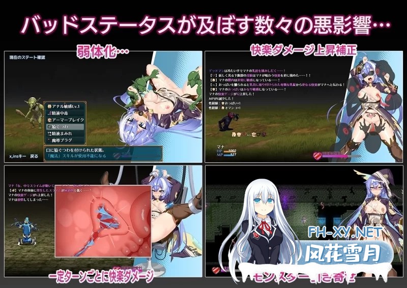 魔物的技能、迷宫中的陷阱,以及H事件将为玛娜的身体附加各式异常状态——总计22种!