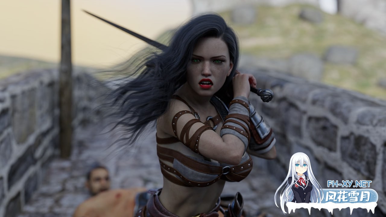 女战士部落恶人在废墟中发现了她,她失去知觉,但没有受伤